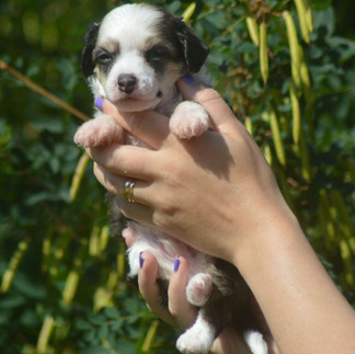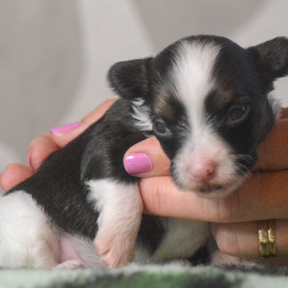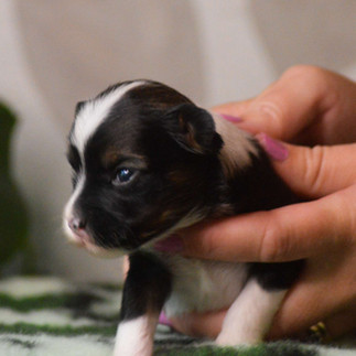 Seuraava myös puuteripoika Tonto, hieman erinäköinen vaalealla päällä kuin tumma veljensä. Tonto on suurin kaikista pennuista syntymäpainona 158 g.