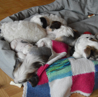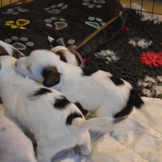 Pentujen ikä on pian 4 viikkoa, nyt olemme jo päivittäin syöneet Royal Caninin Starter- moussea ja piimää. Myös kananjauhelihaa on maisteltu. Pennut ovat jo kovasti ruuan perään ja sen jälkeen sitten jälkiruokamaidot emolta maistuvat. Jalat ovat alkaneet jo kantamaan ja leikkejäkin on jo päässyt syntymään.