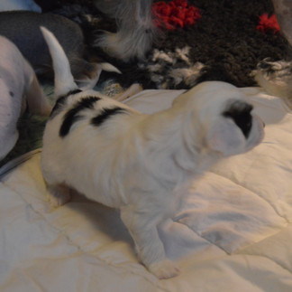 Viimeisenä ainoa puuteripoika joka sai nimekseen Ressu. Ressulla on mustat korvat niin kuin piirroskoira Snoopylla. Muutoin turkki on täysin valkoinen. Hän saa kunnian edustaa meidän harjispentujen tämän hetken ainoana Sukansyöjän puuteripoikana ja on siksi hieman spesiaali <3